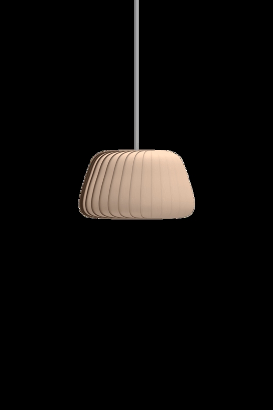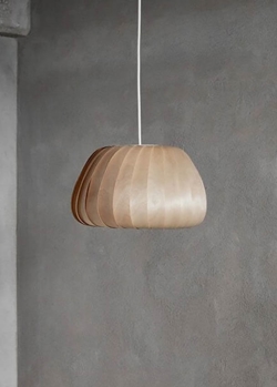 De hanglamp is gemaakt van berk, dat na verloop van tijd een mooie patina krijgt, waarbij de structuur van het hout enigszins verandert. Dit benadrukt de nerven van het hout en maakt ze iets lichter.