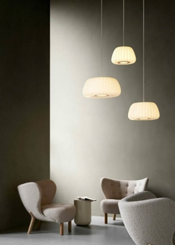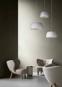 TR19 heeft een zeer klassieke uitstraling, die met zijn zachte en ronde vormen de eettafel prachtig complimenteert – zowel alleen als in clusters van meerdere hanglampen. De hanglamp is verkrijgbaar in twee verschillende materialen, namelijk berk en papier. De materialen van de kap hebben verschillende uitdrukkingen en lichtgraden. De witte tint geeft een gelijkmatig algemeen licht in een aangename witte toon, terwijl de berken hanglampen een zachter en warmer licht geven.