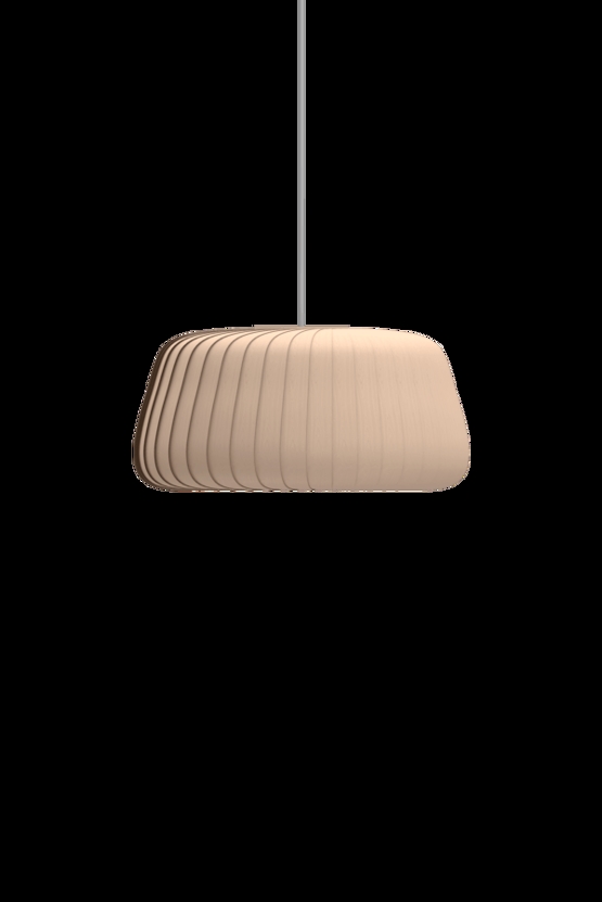 De hanglamp is gemaakt van berk, dat na verloop van tijd een mooie patina krijgt, waarbij de structuur van het hout enigszins verandert. Dit benadrukt de nerven van het hout en maakt ze iets lichter.