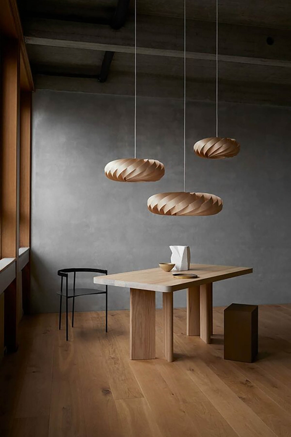 De prachtige hanglamp heeft een gedraaide vorm die het licht in alle richtingen verspreidt, maar tegelijkertijd de lichtbron afschermt. Het is daarom zowel een gezellige als functionele lamp, gemaakt van goed vakmanschap. De lamp is essentieel om boven de eet- of keukentafel te hangen en kan gemakkelijk worden gecombineerd met andere Tom Rossau hanglampen.