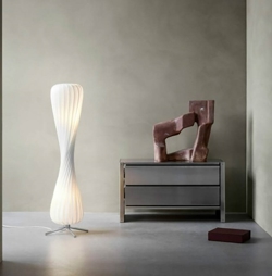 De vloerlamp is gemaakt van PC Nonwoven, een zeer duurzaam en flexibel materiaal dat de witte kleur van de lamp in de loop der tijd behoudt.