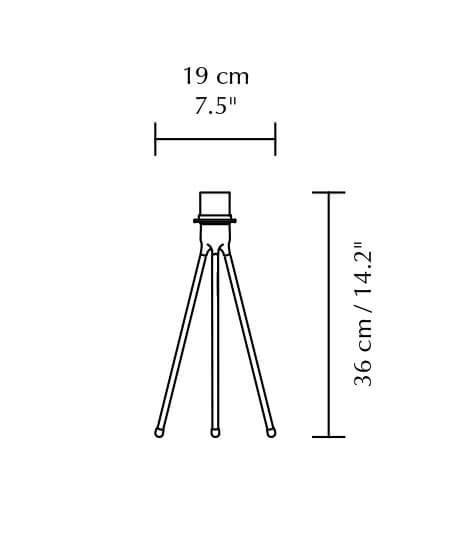 De Tripod tafellampvoet met E27-fitting transformeert met de drie slanke poten de gekozen lampenkap tot een sculpturale tafellamp. Combineer bijvoorbeeld de voet met lampenkappen Aluvia, Carmina, Silvia, Around the World mini en medium of Eos micro, mini en medium evenals Eos Esther en Eos Evia van Umage.
