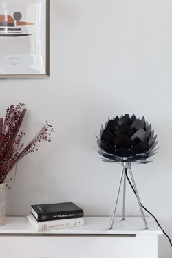 De Tripod tafellampvoet met E27-fitting transformeert met de drie slanke poten de gekozen lampenkap in een sculpturale tafellamp. Combineer bijvoorbeeld de voet met lampenkappen Aluvia, Carmina, Silvia, Around the World mini en medium of Eos micro, mini en medium evenals Eos Esther en Eos Evia van Umage.