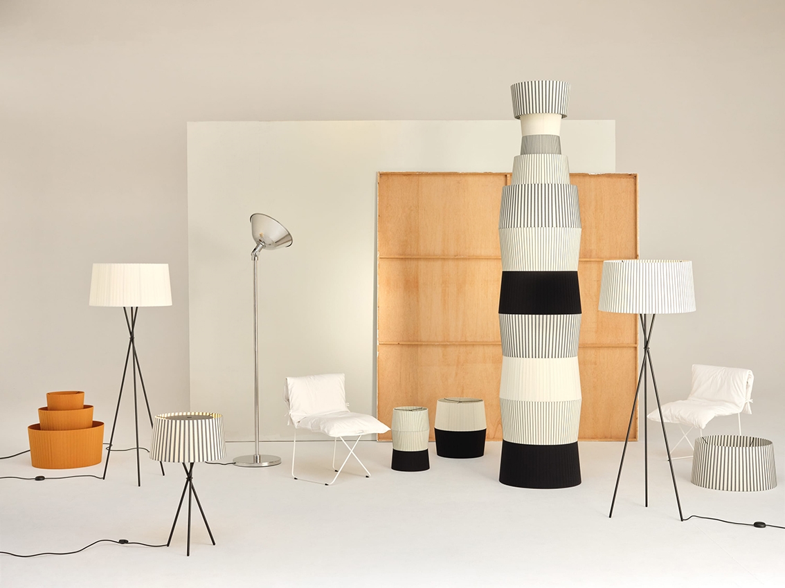 Santa & Cole Tripode G6 25-jarig jubileum tafellamp, Bretonse gestreepte kap.