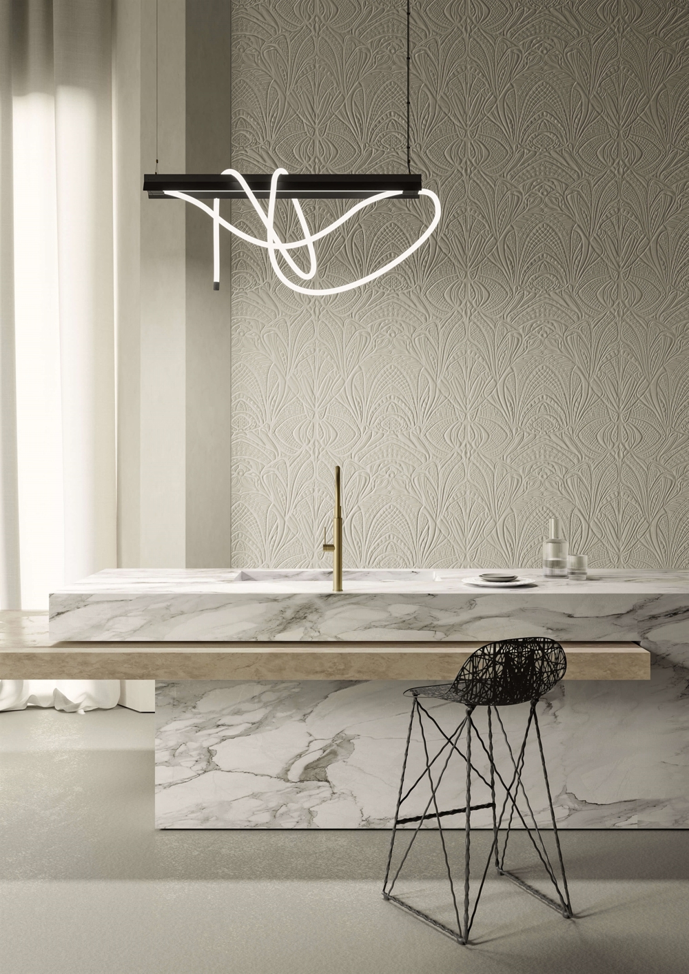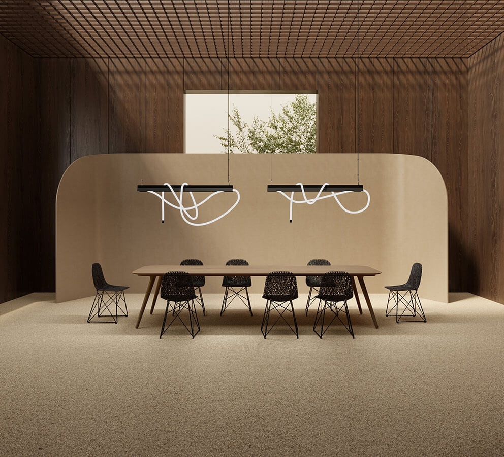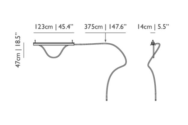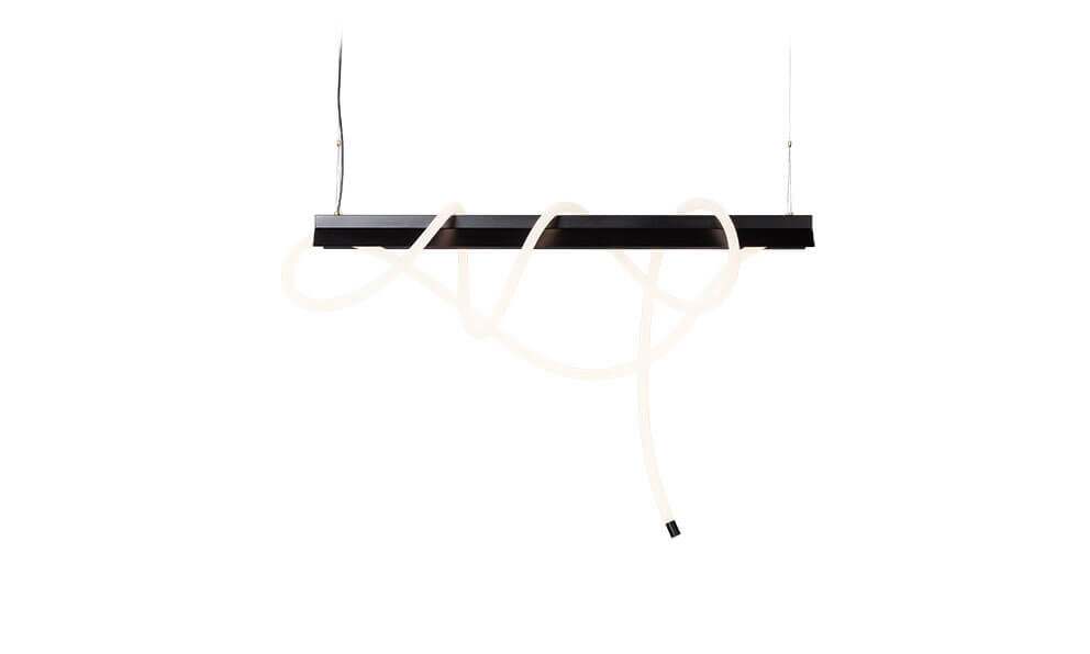 Tubelight is ook verkrijgbaar in een versie met een 1,5 meter LED-buis in siliconen die in een boog onder het armatuur hangt.