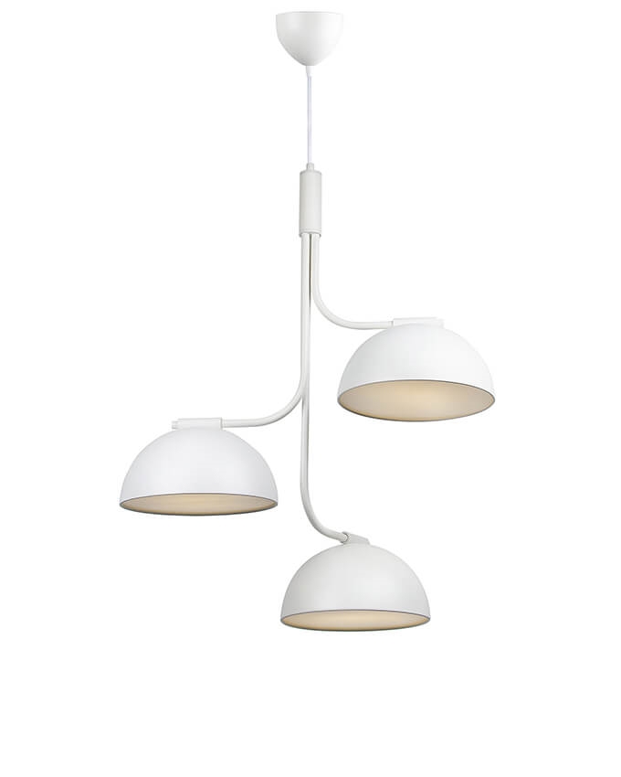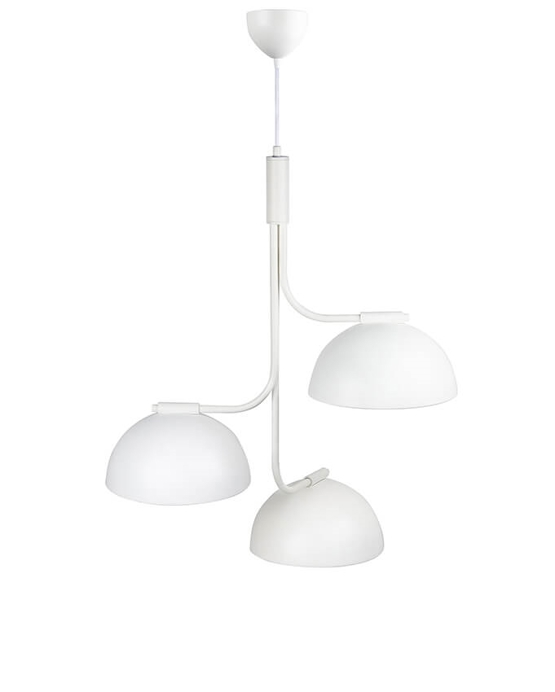 De Tullio hanglamp bestaat uit drie lampenkappen, die allemaal zachte en ronde vormen hebben. Hierdoor geeft de hanglamp een sculpturale uitstraling in de ruimte en een goede hoeveelheid licht, dankzij de drie kappen. De kappen zijn verder uitgerust met diffusers, zodat het licht naar beneden schijnt en niet verblindt.