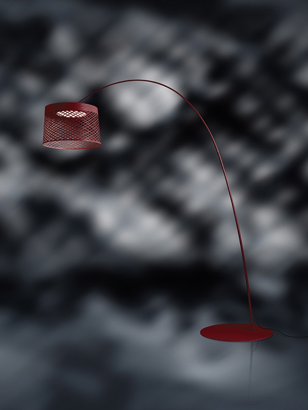 De Twiggy Grid vloerlamp is verkrijgbaar in de kleuren rood en grijs.