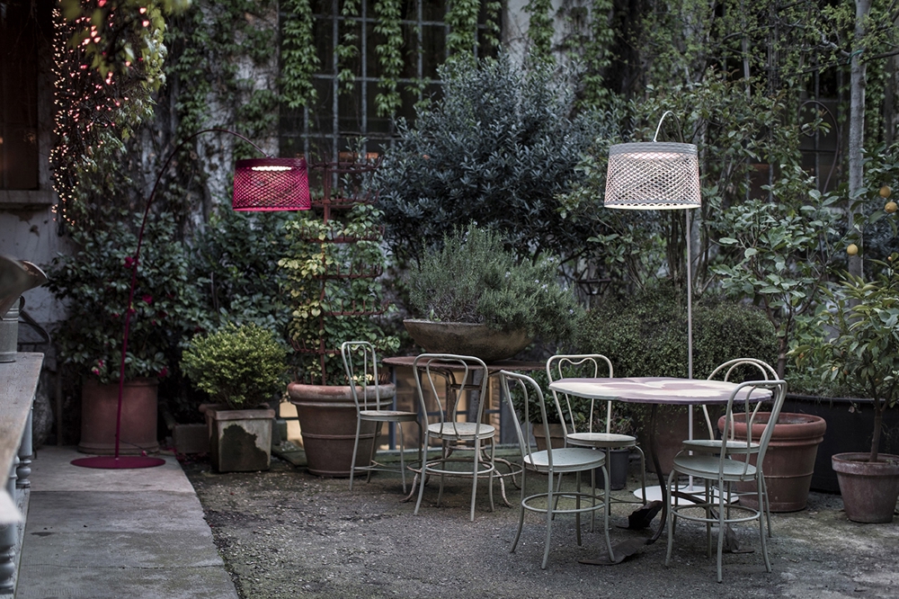 De tafellamp is gemaakt van materialen die ervoor zorgen dat de lamp mooi blijft ondanks weer en wind.