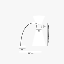 De hoogte van de vloerlamp kan worden aangepast met behulp van gewichten die eenvoudig kunnen worden bevestigd en verwijderd.