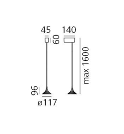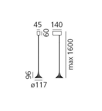 Max. hoogte vanaf het plafond: 1,6 m