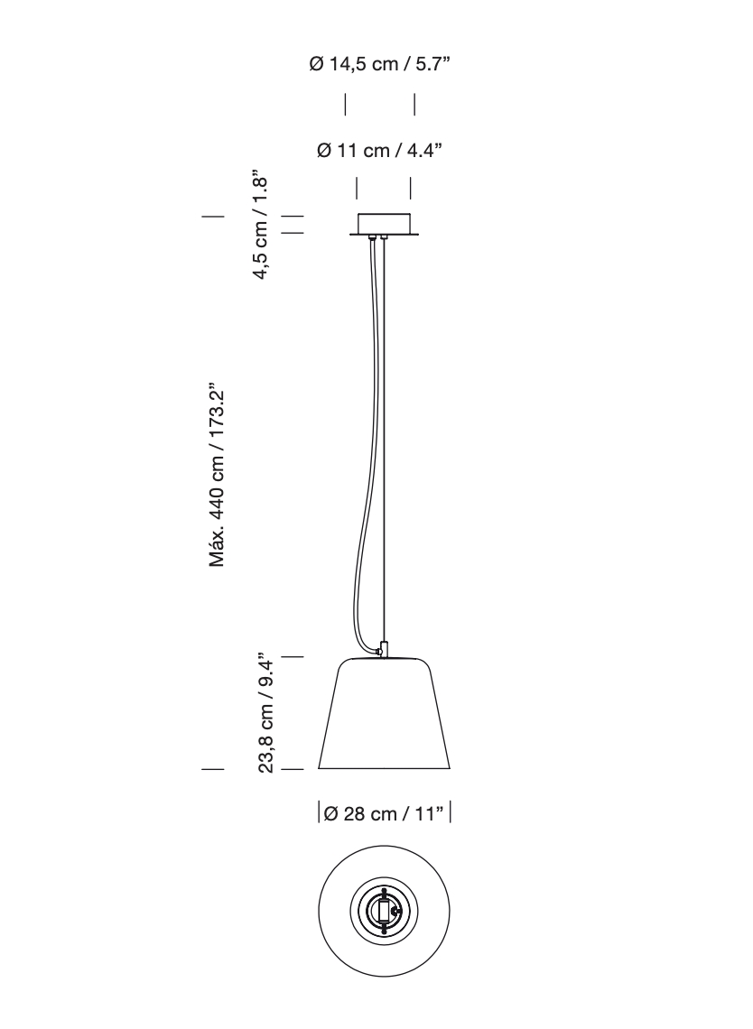 Vaso is een eenvoudige en effectieve hanglamp, die met zijn kegelvormig ontwerp en licht gebogen afwerking een breed scala aan toepassingen heeft. Hang hem individueel of in een rij. Het tijdloze ontwerp en de krachtige lichtbron kunnen in veel situaties worden gebruikt.