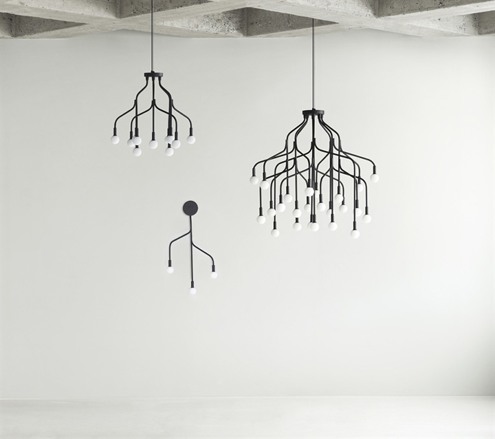 Vekst is verkrijgbaar als kroonluchter in small en large en als wandlamp.