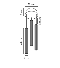 Afmetingen: plafondkap: Ø22 x H6 cm, kappen: Ø5 x H40 cm