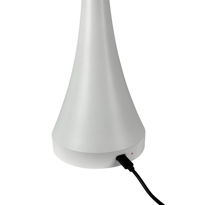 De oplaadbare Vienna LED tafellamp is draadloos en kan overal in huis worden meegenomen waar behoefte is aan een aangenaam en gezellig licht. De lamp kan ook op het balkon of terras worden gebruikt op een zomeravond, maar moet na gebruik binnen worden gehaald omdat hij niet bestand is tegen vocht. De batterijlamp wordt opgeladen via de meegeleverde USB-kabel en is dimbaar in drie stappen, zodat je zelf de gewenste lichtsterkte kunt kiezen.