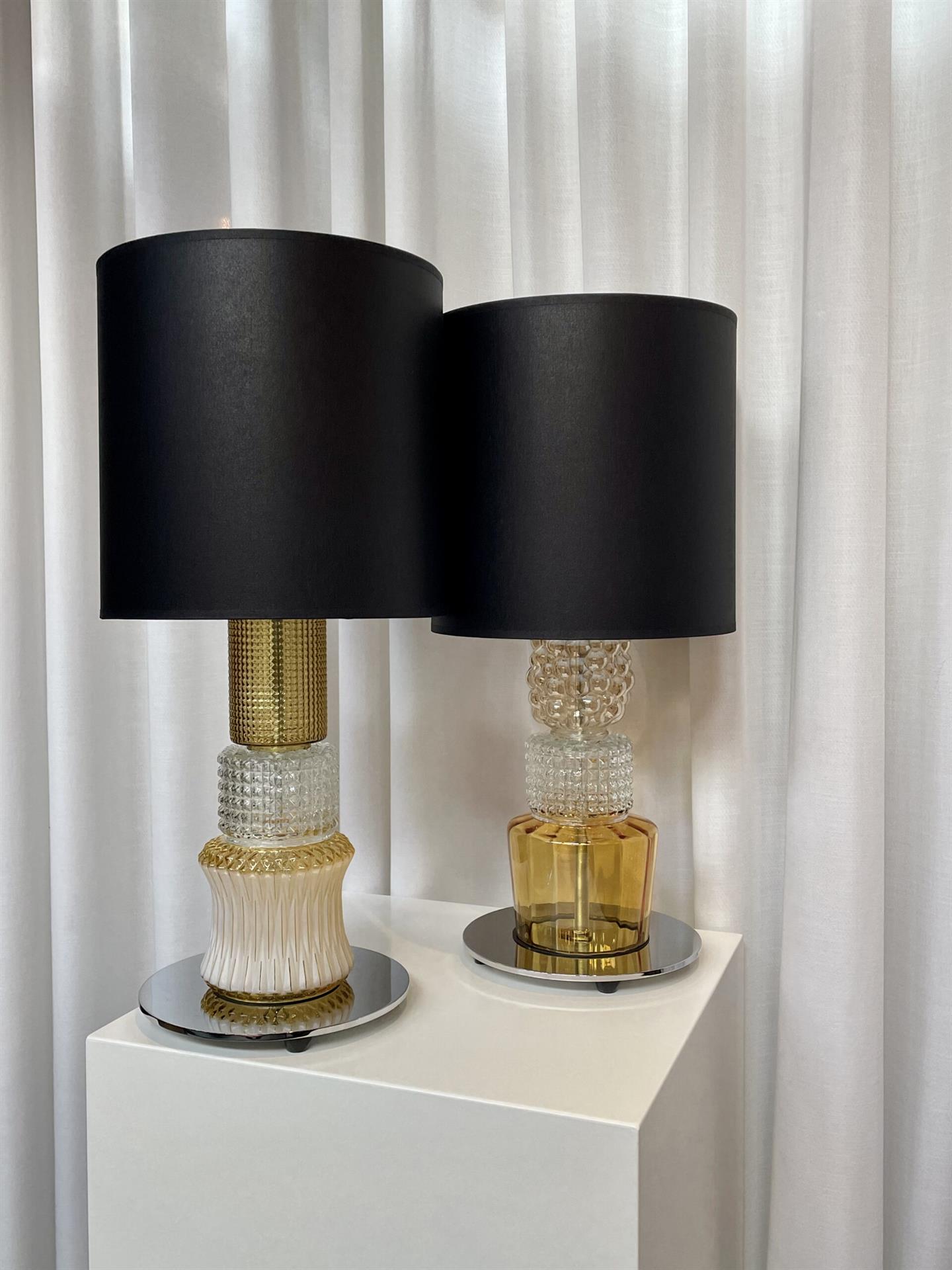 Het is mogelijk om kleuren van glas of een andere kapkleur en velourskap te kiezen.