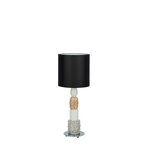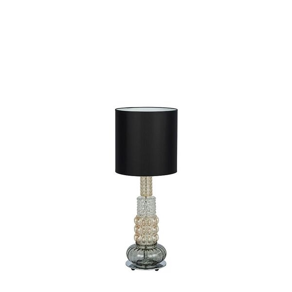 De lamp wordt geleverd met een handgemaakte zwarte stoffen kap.