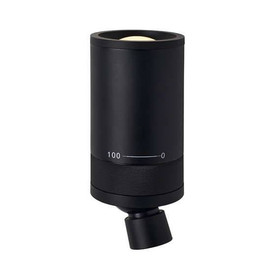 Draaibare dimmer op de lamp (0-100%) voor de verstelbare lichtbron (onderste)