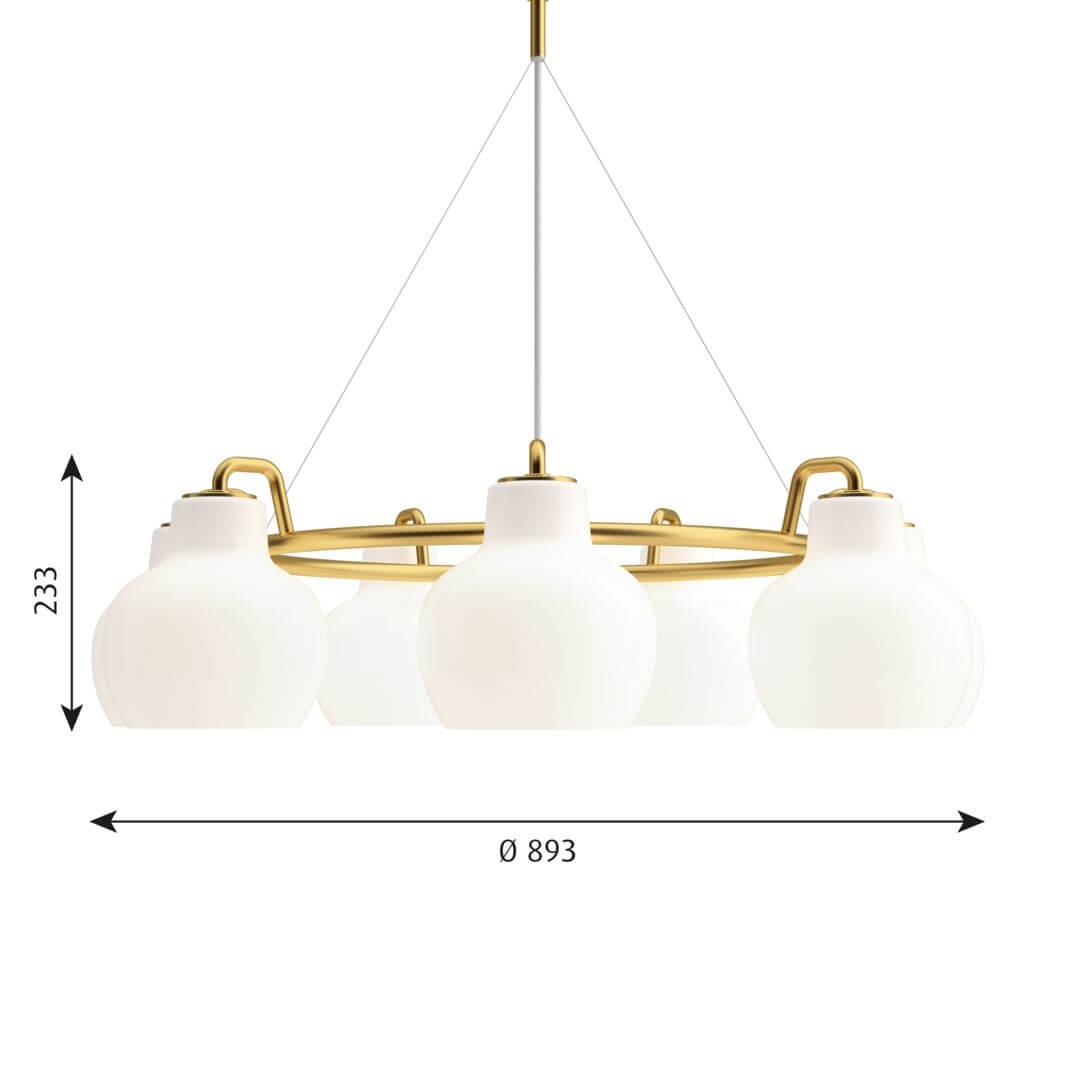Louis Poulsen VL Ringkrone 7 hanglamp, messing/glanzend opaal - ontworpen door Vilhelm Lauritzen.