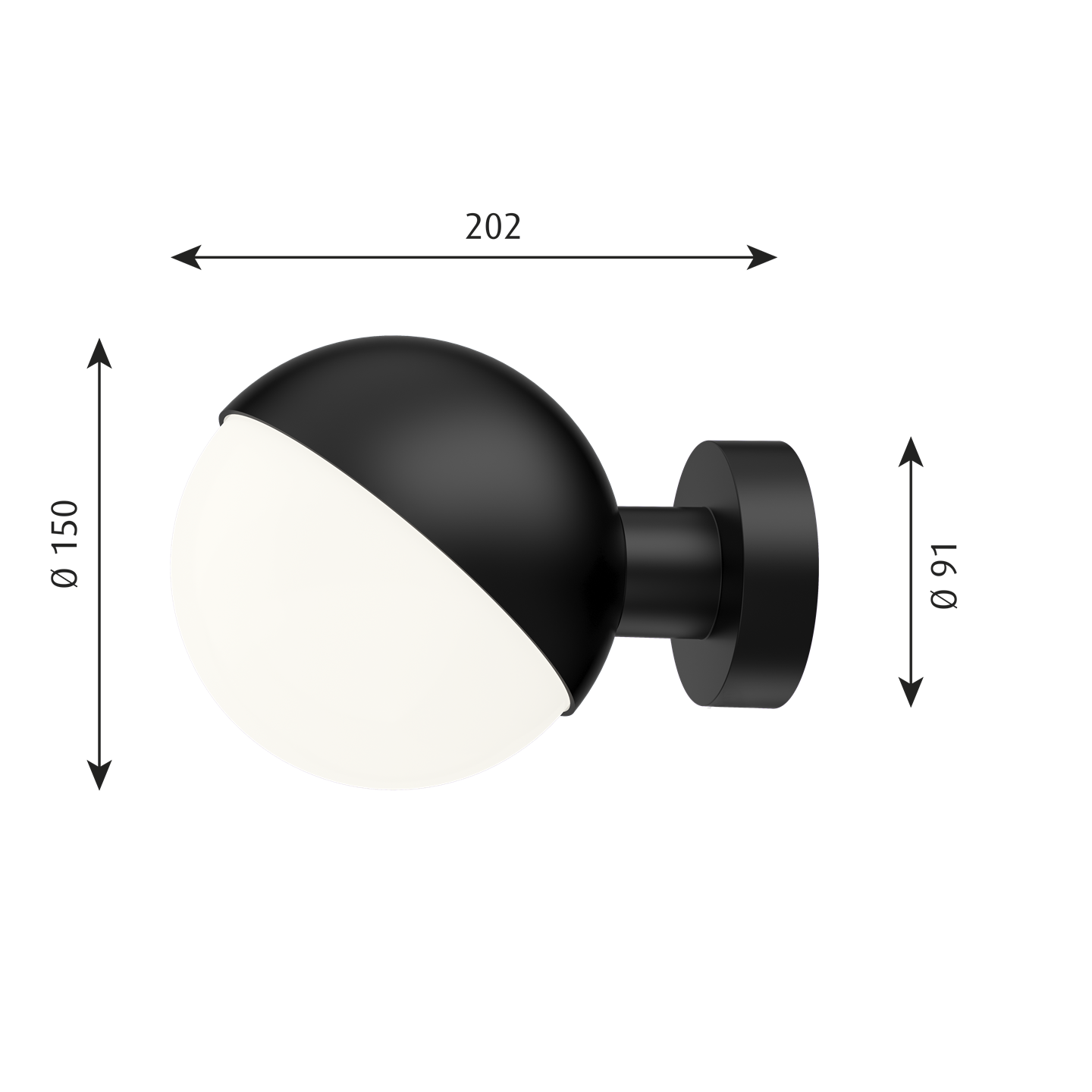 Louis Poulsen VL Studio wandlamp z/koord Ø150, zwart - ontworpen door Vilhelm Lauritzen.
