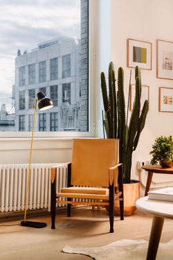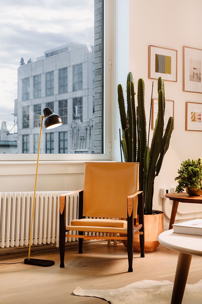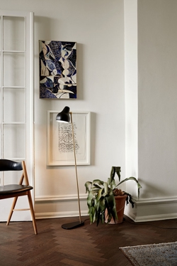 De VL38 vloerlamp heeft een uiterst functioneel ontwerp, waarbij de kap naar behoefte kan worden aangepast. De armatuur straalt een direct en gericht licht uit, en dankzij de witgelakte binnenkant van de kap heeft de lamp een zeer aangenaam licht.