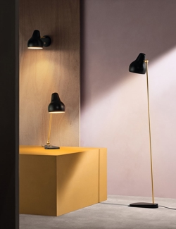 VL38 is oorspronkelijk ontworpen voor het Radiohuis. De lampenserie bestaat uit wandlampen, tafellampen en vloerlampen in zwart en wit.