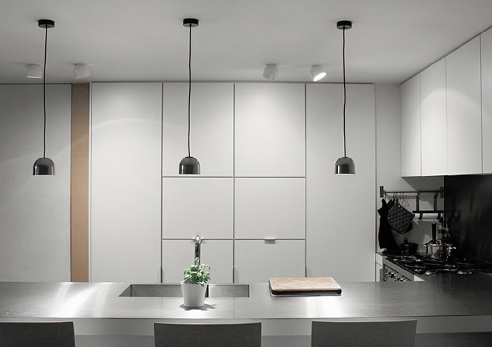 De Wan lamp van Flos geeft een direct licht zonder verblinding, omdat het glas gehard veiligheidsglas is.