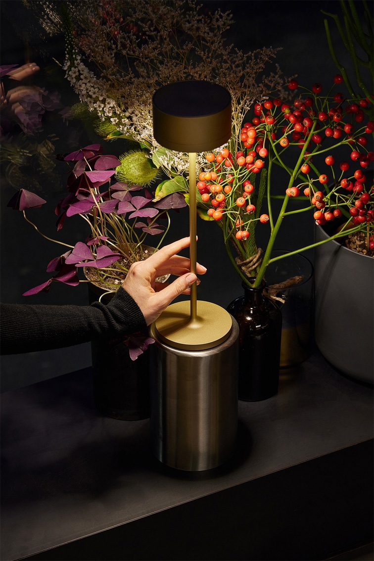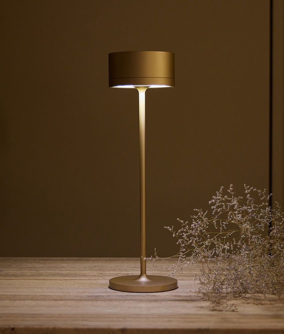 De elegante tafellamp is geschikt voor buitengebruik dankzij IP-klasse 65, en een oplaadbasis met kabel en USB-poort is inbegrepen in het pakket, zodat je de lamp eenvoudig kunt opladen.