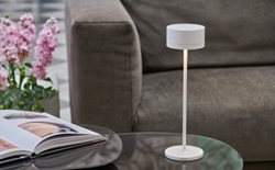 De elegante tafellamp is geschikt voor buitengebruik dankzij IP-klasse 65, en een oplaadbasis met kabel en USB-poort is inbegrepen in het pakket, zodat je de lamp eenvoudig kunt opladen.