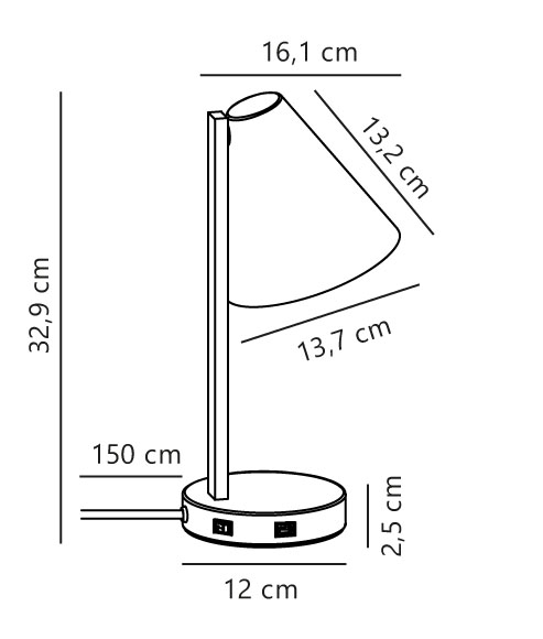 Afmetingen: H32,9 x D16,1 cm, kap: Ø13,7 x H13,2 cm, voet Ø12 cm