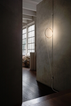 Wirering Wandlamp met grijs snoer & roze ring – ontworpen door Formafantasma voor Flos in 2018.