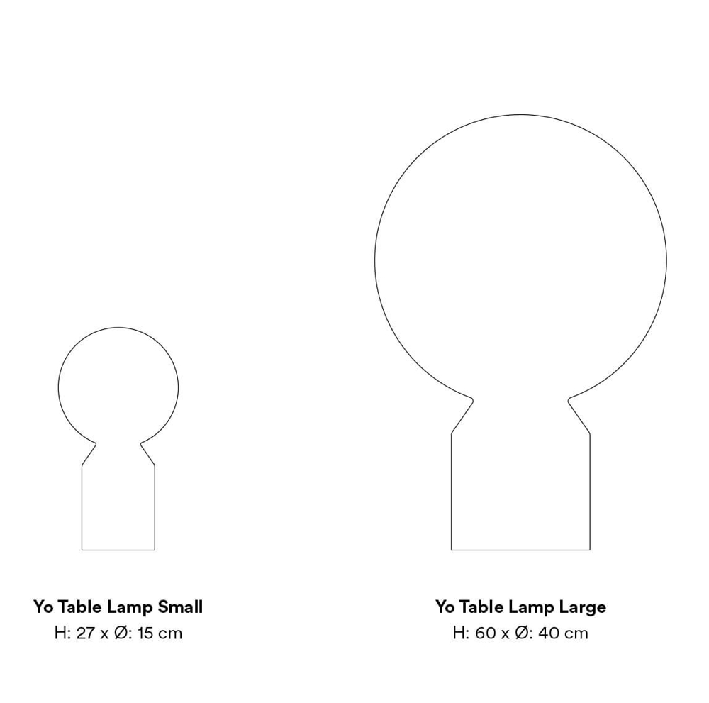 De Yo tafellamp is verkrijgbaar in de maten klein en groot, waarbij de grootste ook kan functioneren als vloerlamp.