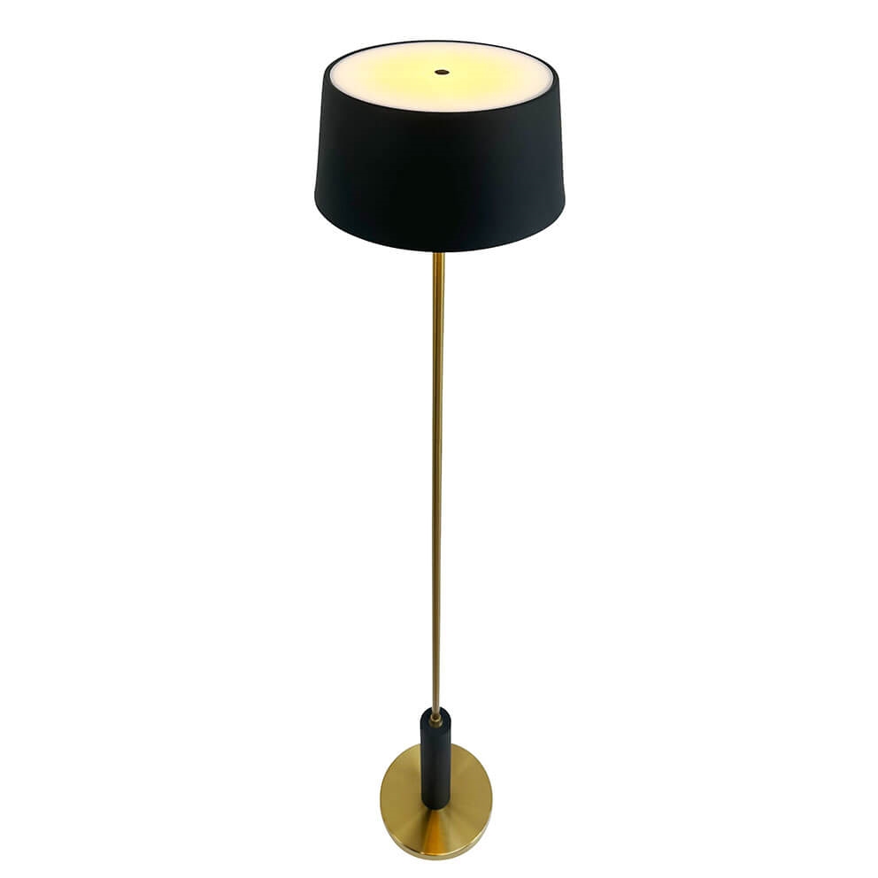 De oplaadbare Yoyo vloerlamp is met zijn slanke design perfect voor plaatsen met beperkte ruimte. De kap van de batterijlamp is gemaakt van geborsteld zwart metaal en de basis en lampenstandaard zijn van messing.