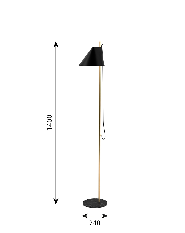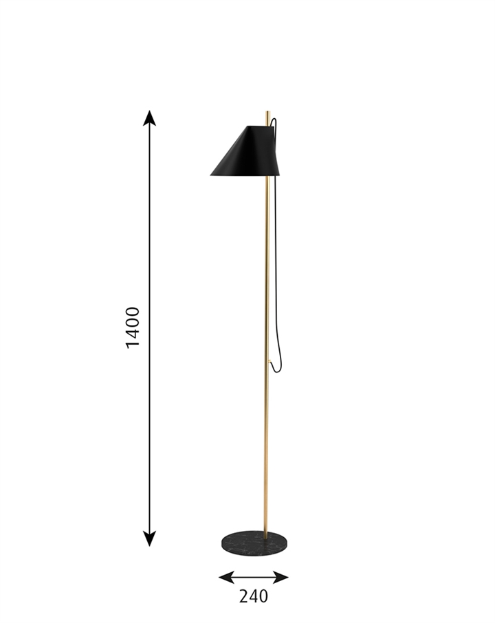 Louis Poulsen Yuh vloerlamp, zwart/messing - ontworpen door GamFratesi