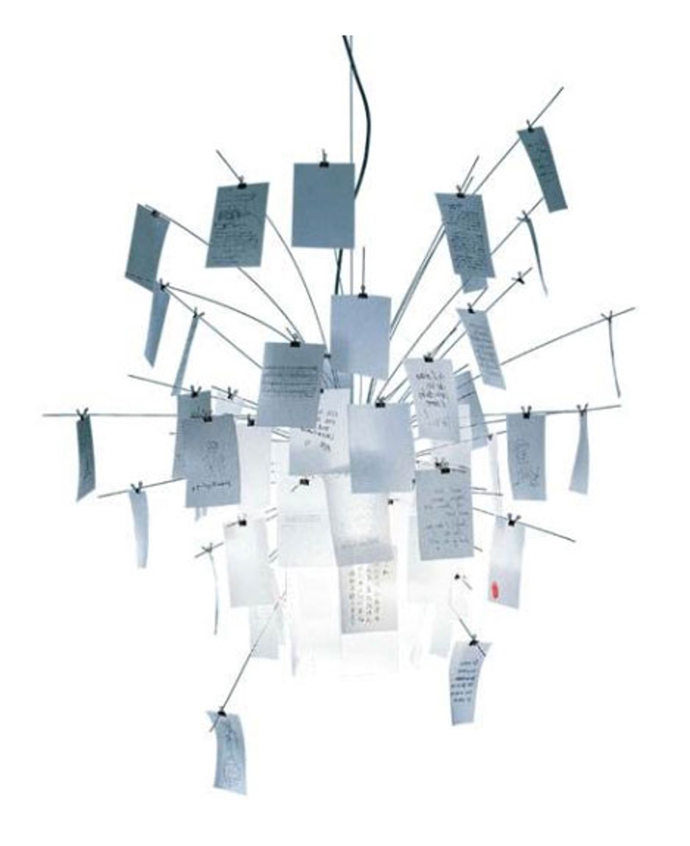 Spannende hanglamp ontworpen door Ingo Maurer. Verkrijgbaar in twee maten met papierformaat in A5 of A6. Zettel'z meet 80X80 cm, en Zettel'z A5 meet het dubbele; 120X120 cm.